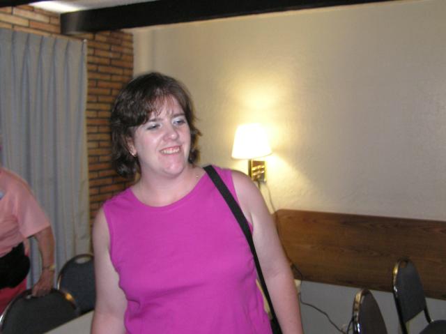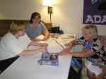 Jillian Arnott, Meeka and Judy talk about Jill's needle point |