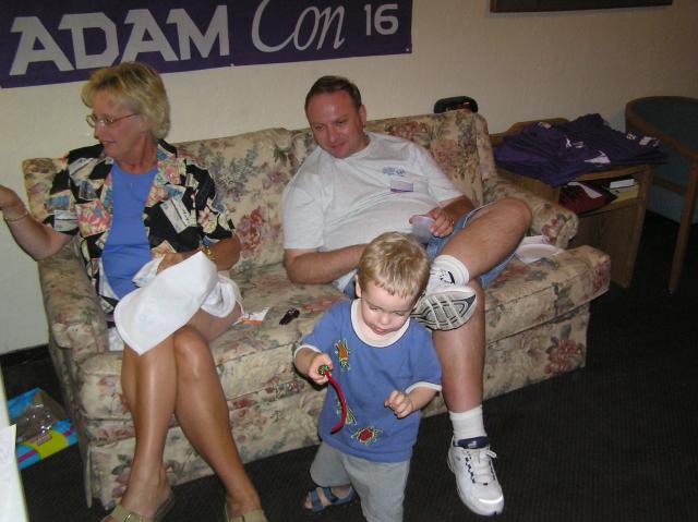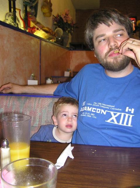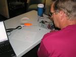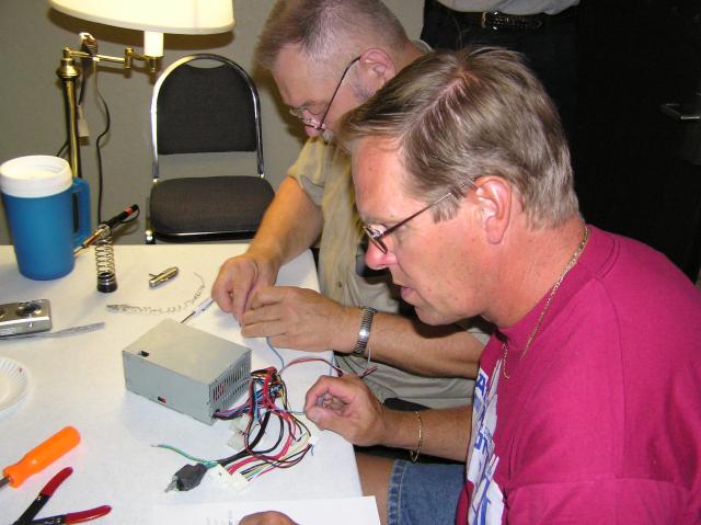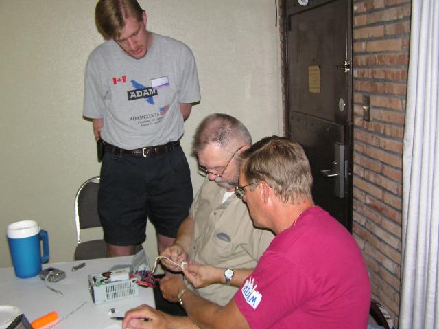 Bob examines the plans for converting a PC power supply to work on the Adam |